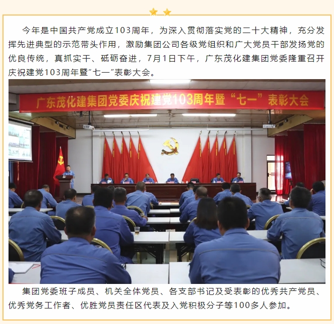 廣東茂化建集團黨委召開慶祝中國共產黨成立103周年暨“七一”表彰大會
