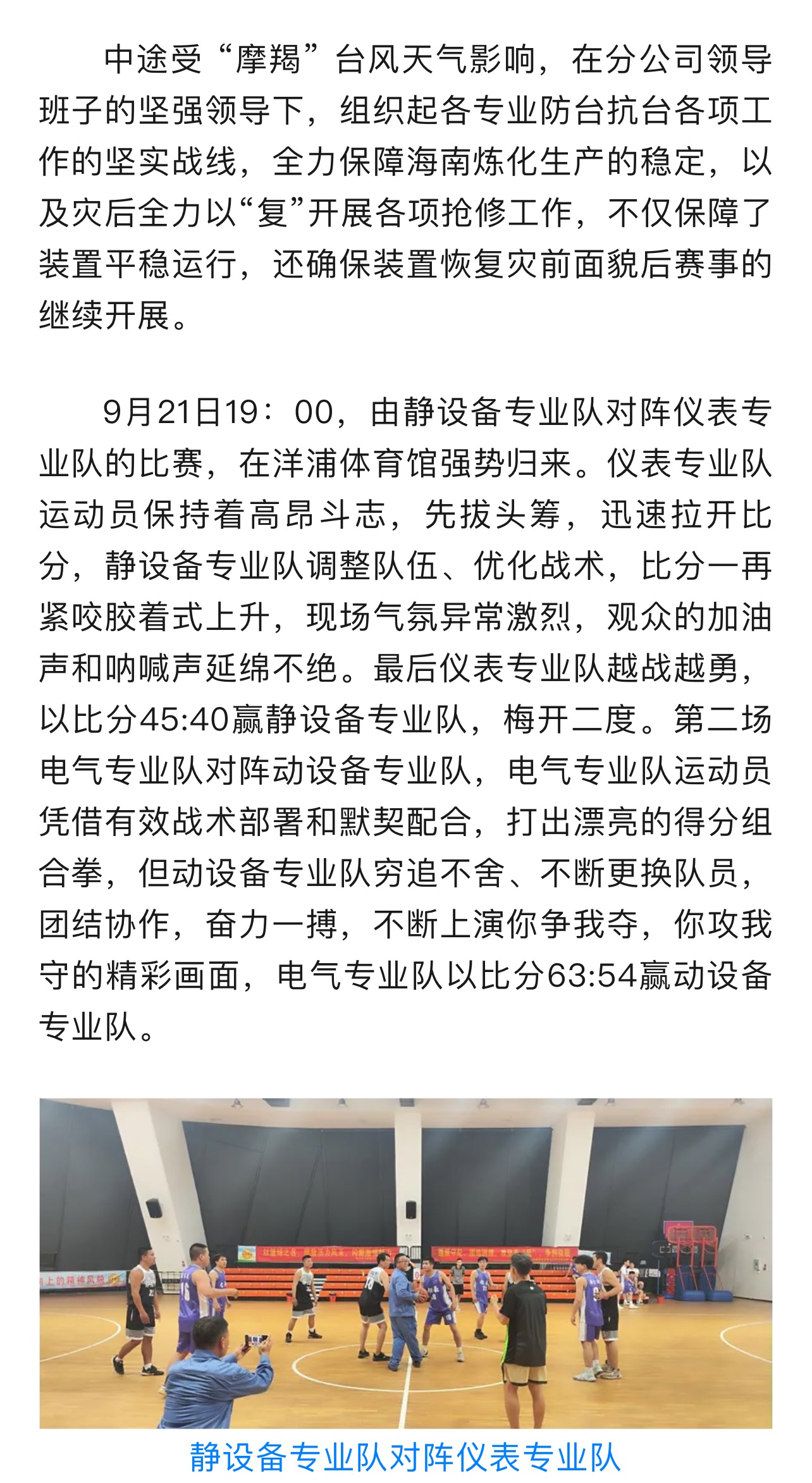 洋浦分公司員舉辦工籃球賽迎國(guó)慶