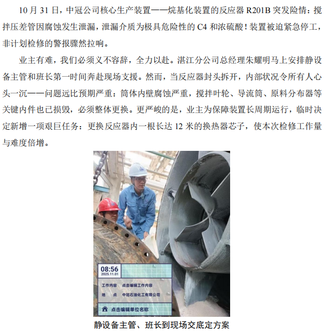 湛江分公司中冠項目部搶修烷基化反應器紀實
